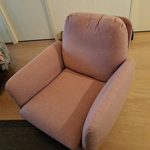 Lemmikkitalous, eli vaikka kuinka putsailen, rakenteista löytyy luultavasti kissan ja koiran irtokarvoja. Kissa ei tähän ole kuitenkaan kynsiään teroittanut, vaikka senkin päiväunikäyttöön tuoli on hyvin kelvannut.