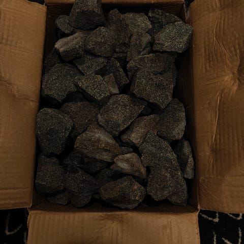 Harvian kiuas ehjällä lasiluukulla. Tulipesä vaatii hitsausta useammasta kohtaa. Hormin lähtö takaa.