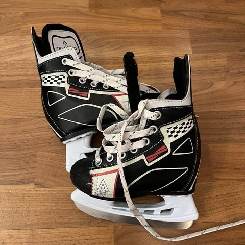 Tecnopro Jääkiekko luistimet lasten koko 27. Luistimet ovat mustavalkoiset ja sopivat jääkiekon harrastamiseen.