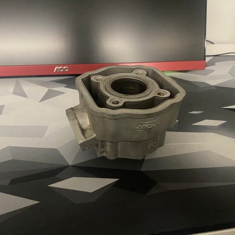 Airsalin alumiininen racing sylinterisarja 50cc kokoa. Ajettu ~500km, priima kunnossa. Ei väljä, männärenkaat hyvässä kunnossa. Hyvillä säädöillä tällä voi ajaa vielä 10 tkm. Ainut miinus että pakoputken kierteet ovat kiinteät sylinterissä joten m6 muttereilla kiinni putken holkki.