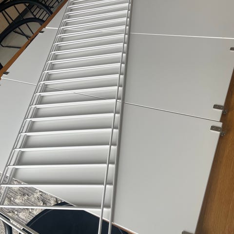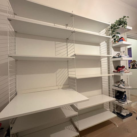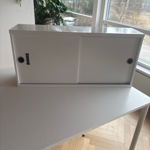 Ostan hyväkuntoisen saarninsävyisen String System -liukuovikaapin kiinnikkeineen koossa 78 x 30 cm.