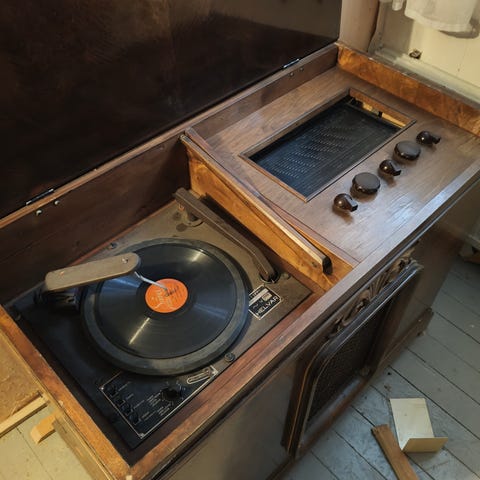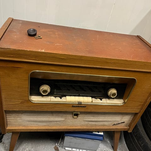 Normaalista poikkeava vintage levysoitinkaappi myytävänä. Toimintaa ei ole testattu. Mukana varaosia ja puhdistus tarvikkeita. Takakulmassa korjaus. Muilta osin kunto hyvä. Maadoittamaton pistoke. Toinen johto poikkaistu.