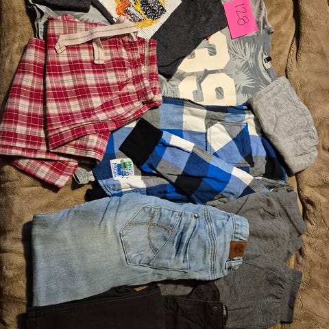 Vaatepaketti 122/128. Hyvä käytetty kunto.