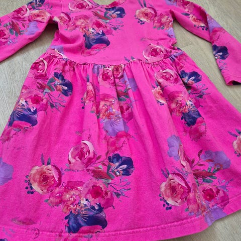 Myydään tosi siistissä kunnossa oleva Kaikon kukkapaita. Koko 98/104. Ei reikiä, lankapakoja tms. Selässä sievä yksityiskohta. 95% (luomu)puuvilla, 5% elastaani.