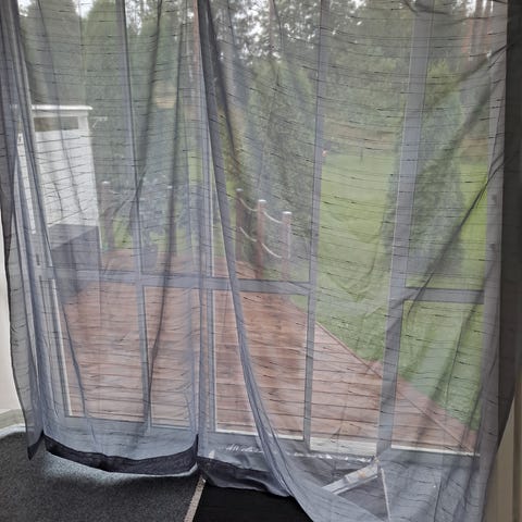 Hyväkuntoiset harmaat valoverhot, yhden verhon koko n. 130x240cm.