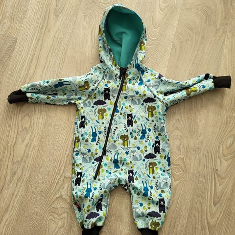 Pinkki Jonathanin softshellhaalari. Koko 74-80. Hihat ja lahkeet saa käännettyä suojiksi.