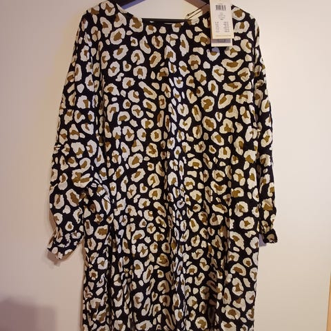Uudenveroinen Masain trikoomekko. Kai-kai noin 62cm, olka-helma 109cm (venyy). Hyvin laskeutuvaa viskoosia. Ovh 109e. Toridiilillä, normi postitettuna tai noutona