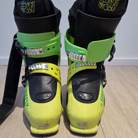 Salomonin t2 laskettelumonot, kokoa 247mm / 20-20,5, vastaa noin kokoa 32,5-33,5. Hyvä kunto, mutta pinnassa monenlaista naarmua ja tummentumaa.