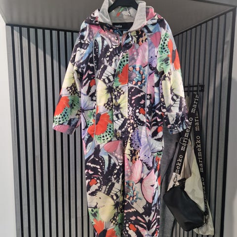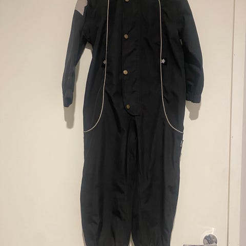 Housut erittäin siistissä kunnossa ja takissakin vain vähän merkille ominaista käytönjälkeä hihojen suulla ja heijastimisissa. Molemmat kokomerkinnällä 104cm.