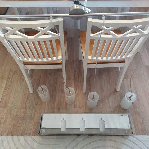 IKEA:n Kvintetti kattovalaimesta jonka kupu huurettua maitolasia tuunattu kattovalaisin.