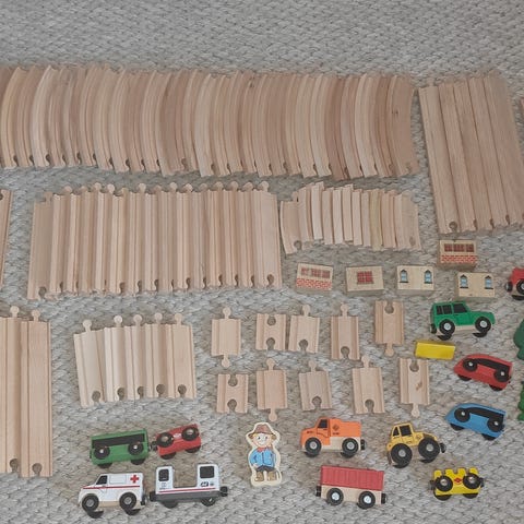 Hyvä kuntoinen satsi. Muutama ikean rata osa, muut brion. Saa ison radan tehtyä ja mäkiä myös. Junaa ja ukkeleita.