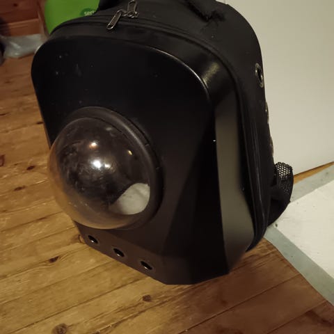 Zooplussan lemmikkireppu. Melkein uudenveroisessa kunnossa kun olikin vähän turhan ahdas omille 5kg kissoille.