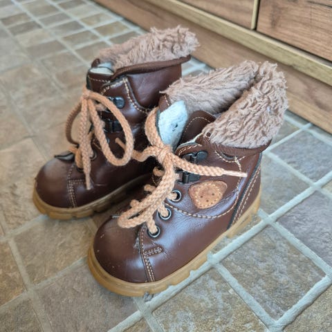 Tässä hyvät kengät pojalle kokoa 21. Mustat, sinistä sisävuoressa. Sopii myös keväällä ja pienemmällä pakkasella ja kaupoissa ym