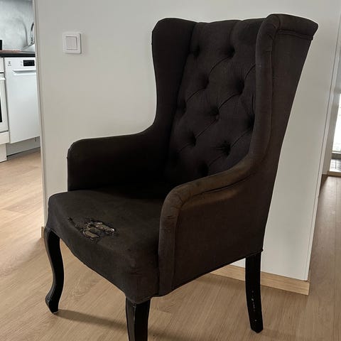Myydään rakas iso nojatuoli uuden sohvan tieltä. Ostettu torista. Kunto hyvä. Jalat irroitettavissa ja kuljetettu aikanaan pikkuauton takatilassa, eli ei välttämättä vaadi pakua. Vain nouto mahdollisimman pian. Koiratalous.