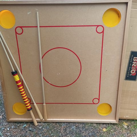 Puinen korona-peli taitettavalla jalalla. Hyväkuntoinen, 1 vihreä nappula puuttuu.