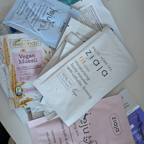 Hammasharjalle+tahnalle, 2 purkkia nesteille, 3 pikkupurkkia rasvoille ja laukku. Mitat 30x20cm. Pari kertaa käytetty.