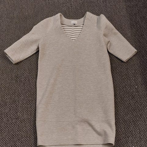 Vaaleanpunainen vanhaan roosaan vivahtava hupullinen collegemekko,