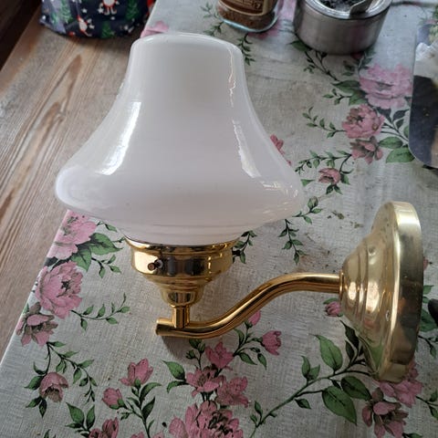 Myydään n. 40- luvulta olevat kaksi seinälampettia. Varjostimet uudemmat. Lampetit johdotettu yhteen, yksi katkaisija, yksi pistotulppa.