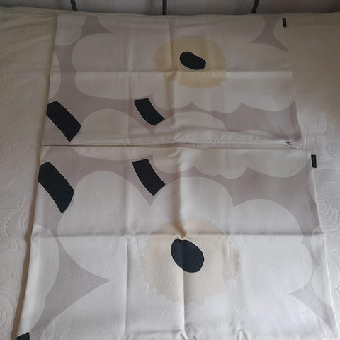 Marimekko Unikko tyynynpäällinen. Kuosina klassinen Unikko, väreinä tummansininen ja valkoinen. Materiaali on puuvillaa ja pellavaa. Sopii käytettäväksi sisustustyynyn päällisenä esimerkiksi olohuoneessa tai makuuhuoneessa. Koko 50x60.