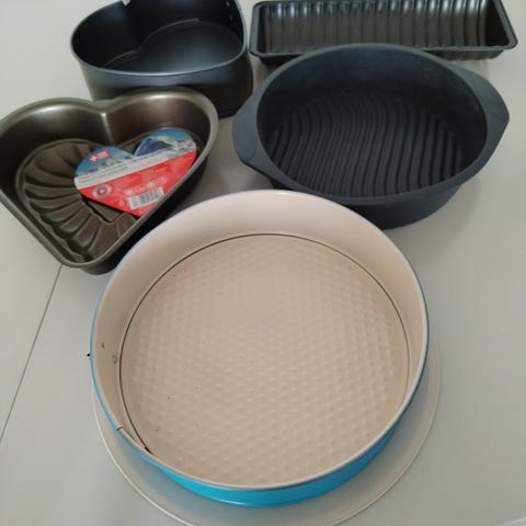 Myydään leivontasetti: piirakkavuoka, 4 x kakkuvuoka, valtava määrä muotteja, 3 pursotinta etc.