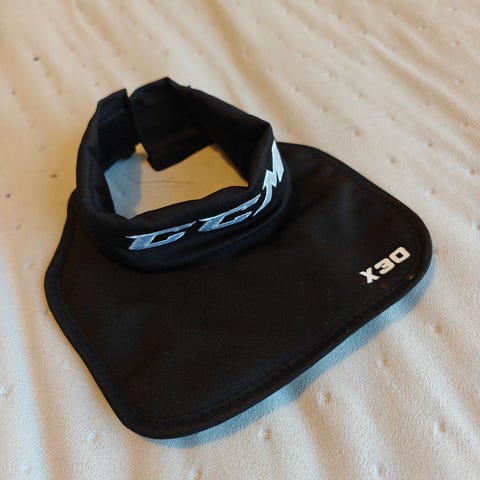 CCM X30 jääkiekkokaulasuoja juniorikokoisille pelaajille. Väri musta. Kauluksen koko on säädettävä, kaulanympärys 30–36 cm.