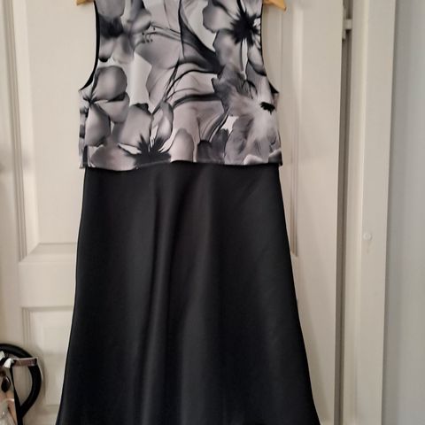 T.luumu Horoskop-merkkinen juhlamekko, koko 44. Kk. 53cm, oh. 112cm. Polyesteri-polyamidi. Satiinikangas vuori, 45cm vetoketju takana.