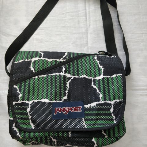 Siisti, runsaasti taskuja omaava olkalaukku.