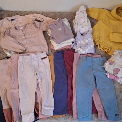 Myydään vaatepaketti, joka sisältää ehjiä hyvässä käytetyssä kunnossa olevia vaatteita. Koko 86-92.