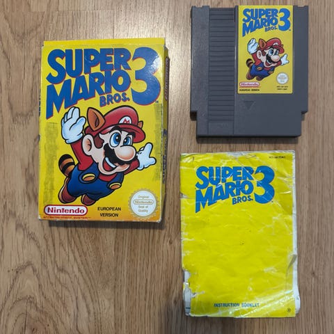 Nintendo Super Mario Bros. Nintendo 8-bit peli European Version. Peli on alkuperäinen kasetti Nintendo Entertainment System -konsolille (NES). Kuvatun perusteella mukana on alkuperäinen laatikko, muovinen kasettisuojus sekä ohjekirja. Euroopan versio, tekstit englanniksi. Sopii yhteensopiville Nintendo 8-bit -konsoleille, joissa käytetään NES-kasetteja.