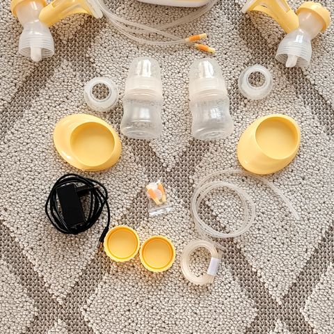 Yhden vauvan aikana ollut käytössä ensimmäiset kuukaudet. Todella hyväkuntoinen Beemoon sähkökäyttöinen rintapumppu. Rintapumpun ”imu/kuppi” osa vähän kellastunut käytössä.
