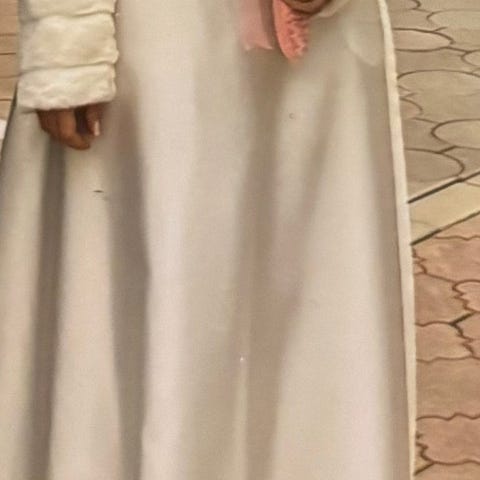 Epäsymmetrinen helma, edestä itselläni noin nilkan kohdalle (olen 168cm pitkä) ja takana pieni laahus.