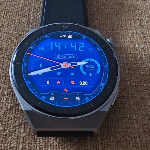 Huawei Watch GT 2 Pro älykello. Pyöreä kosketusnäyttö ja musta ranneke. Mukana alkuperäinen myyntipakkaus ja useita vaihtorannekkeita kuvien mukaisesti. Soveltuu älypuhelimeen yhdistettäväksi rannelaitteeksi, jossa urheilu- ja hyvinvointitoimintoja sekä ilmoitusten näyttö. Akku on todella hyvässä kunnossa.
