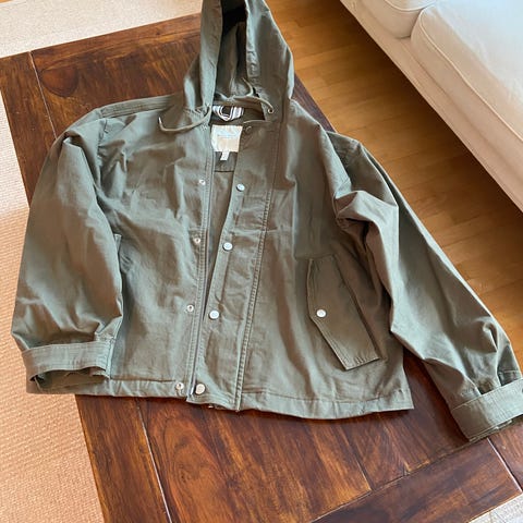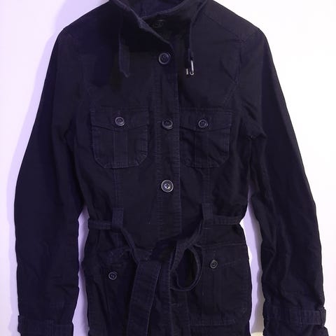 Part Two puolipitkä takki, naisten koko 36. Väri musta. Edessä painonappikiinnitys. Hihat ovat täyspitkät ja helmassa on suora tai vähän levenevä leikkaus. Takissa on tikkivuori. Hupun kuminauhan elastisuus huonontunut, muuten hyvässä kunnossa ja ehjä.