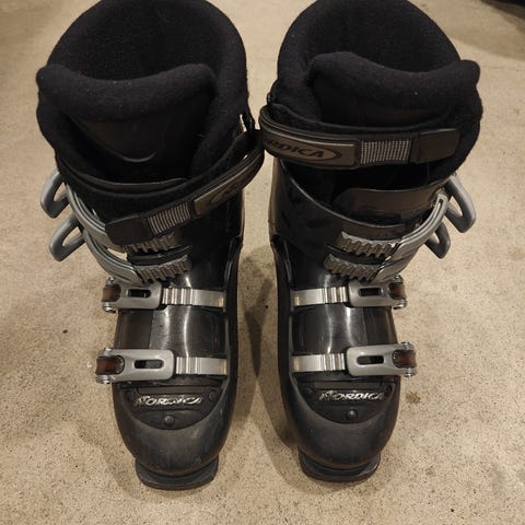 Ok kuntoiset nordican monot pois tilaa viemästä. Nordican oman taulukon mukaan 42-43 euro koon jalalle.