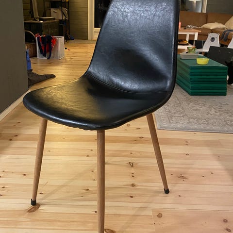 Jysk tuoli, jossa vaalea muovinen istuinosa ja selkänoja sekä puujalat. Istuimessa irrotettava, vaalea pehmuste. Sopii esimerkiksi ruokapöydän tuoliksi tai työpisteelle. Materiaalina yhdistelmä muovia ja puuta. Väri kokonaisuudessaan vaalea, jalat luonnonpuun sävyiset.
