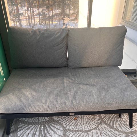 Myydään ulkosohva, ollut itsellä käytössä lasitetulla parvekkeella. Leveys 165cm.