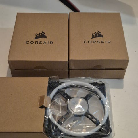 1x Corsair Commander Pro - HUOM! Kaksi tuuletinliitäntää viallisia (1 ja 4), joten tämän kautta voi hallita ainoastaan neljän tuulettimen nopeutta. Loput kaksi tuuletinta täytyy näin ollen laittaa emolevyyn kiinni. Kyseiset liitännät ovat olleet viallisia uudesta saakka, mutta ainakaan itselleni se ei ole ollut koskaan ongelma. Muuten kaikki sen ominaisuudet toimivat ja kaikkia tämän paketin RGB valoja voi hallita sen kautta.