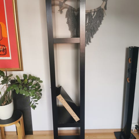 Hyllyn voi sijoittaa lattialle tai halutessaan kiinnittää seinälle.