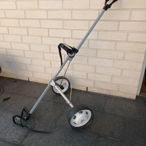Annetaan kuvien mukainen golf kärry tilaa viemästä. Ylempi bagin kiinnitys nauha hävinnyt.