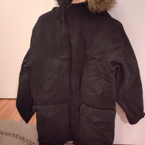 Takki on täysin ehjä ja kaikki vetoketjut toimivat. Huomioi niskassa oleva tahra, joka näkyy kuvassa! 30-asteen pesukoneen peruspesussa se ei lähtenyt. Vahvempia konsteja ei ole käytetty. Ei siten ole tietoa lähteekö se irti ja sen takia takki annetaan ilmaiseksi.