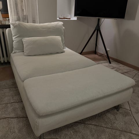 Myydään Ikea Söderhamn divaani + yhden istuttava osa. Väri gunnared beige. Päälliset kuluneet, joten myyn ns ”ilman päällisiä”. Muuten sohva on hyvässä kunnossa. Mukaan saa vielä yhden käsinoja-osan, joka ei ole kuvassa. Koiratalous.