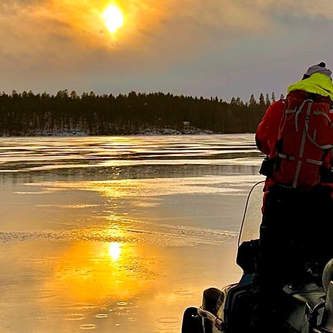 Hyvä lasikuituahkio moottorikelkan perään. Hyvin kulkee pilkki/verkko ym. varusteet.