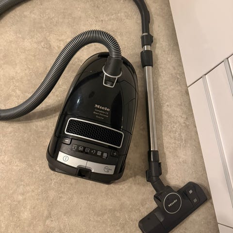 Siisti Mielen uudehko pölynimuri tehokkaalla imuteholla, pitkällä toimintasäteellä ja teleskooppivarrella.
