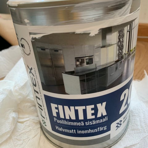 Annetaan valkoinen sisäremonttimaali, kalustelakka, suojausaine ja quick cement. Ne ovat auki, mutta lähes täynnä. Nouto vain Hakaniemestä.