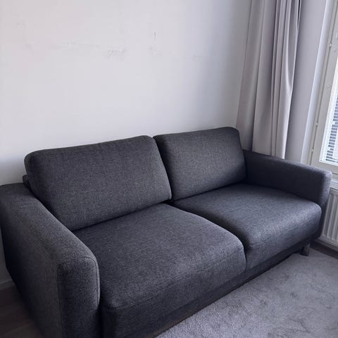 Myydään kuvassa oleva mahdollisesti kruunu kalusteelta oleva sohva. Sohva muuten hyväkuntoinen, mutta istuinosassa yksi sauma vähän auki (kuva), saanee ommeltua kuntoon. Sohvaan vaihdettu juuri 2 uutta jousta. Nouto Joensuusta. Tarjoa hintaa.