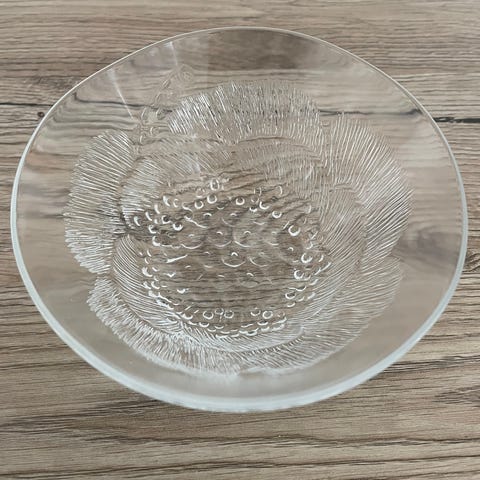 Myydään Nuutajärven Pioni-sarja Oiva Toikan suunnittelema 6 kpl lasi jälkiruokakulhoja, lasilautanen ja kulho.