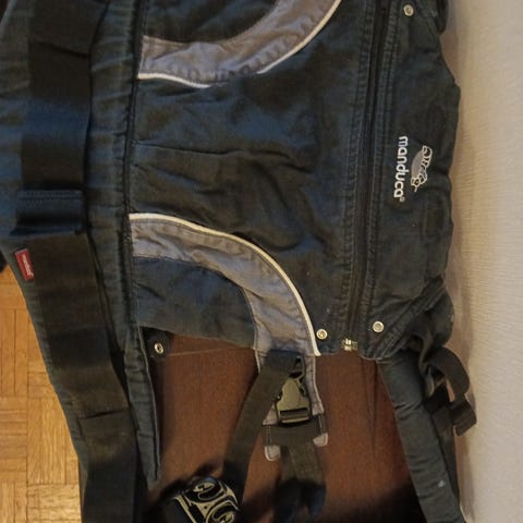 Käytetty hyväkuntoinen beige Manducan kantoreppu.