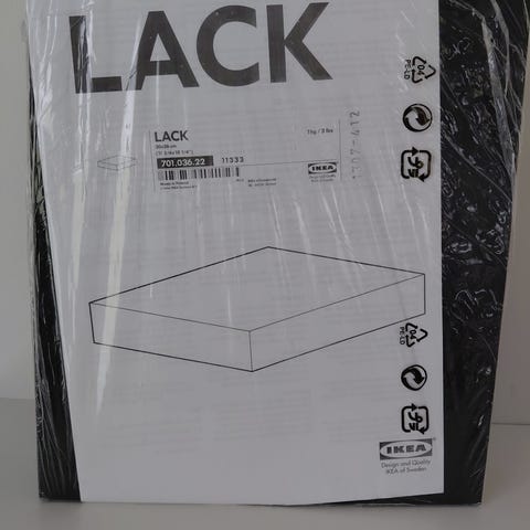 Kaksi kappaletta valkoisia Lack-seinähyllyjä. Molemmissa käytön jälkiä. Yhteensä 5€