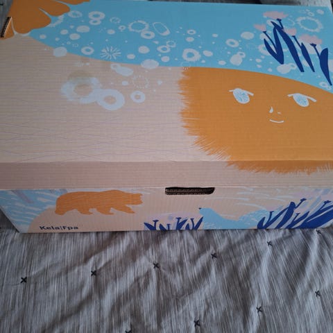 Vuoden 2021 äitiyspakkauslaatikko jossa mukana peitto ja lakanat. Laatikkoa käytetty pari kertaa muutoin hyvässä kunnossa. Koirakoti.