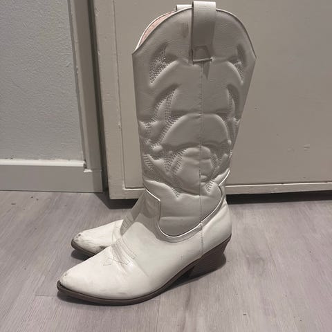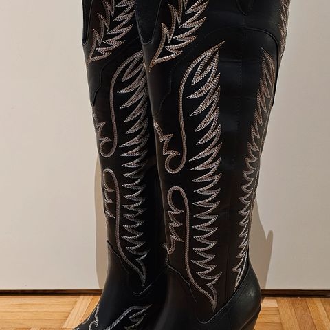 Hyväkuntoiset cowboy bootsit, yhden kesän käytössä olleet, mutta nyt pölyyntyneet kaapissa jo pidemmän aikaa, joten vaativat rasvauksen/vahauksen ennen seuraavaa käyttöönottoa.